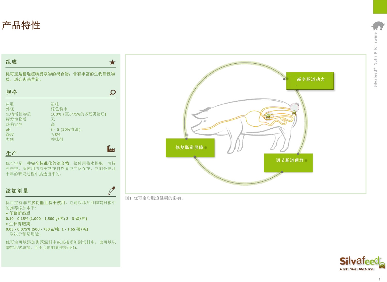 優可(kě)寶具(jù)有(yǒu)獨特的解痙作(zuò)用(yòng),可(kě)調節腸道蠕動,并對 幾種緻病細菌和病毒及其毒素具(jù)有(yǒu)選擇性抗菌活性。 因此,這種植物(wù)提取物(wù)的混合物(wù)适用(yòng)于預防和控制腸 道疾病,包括幾種腹瀉疾病和壞死性腸炎。 疾病、腸道運動和細菌負荷,同時提高飼料消化